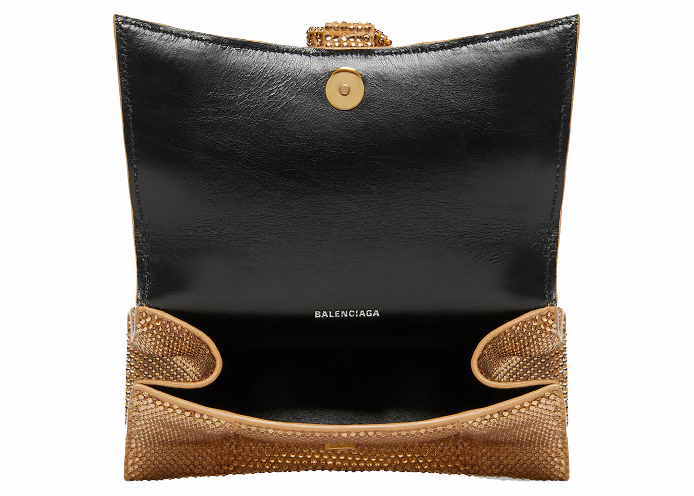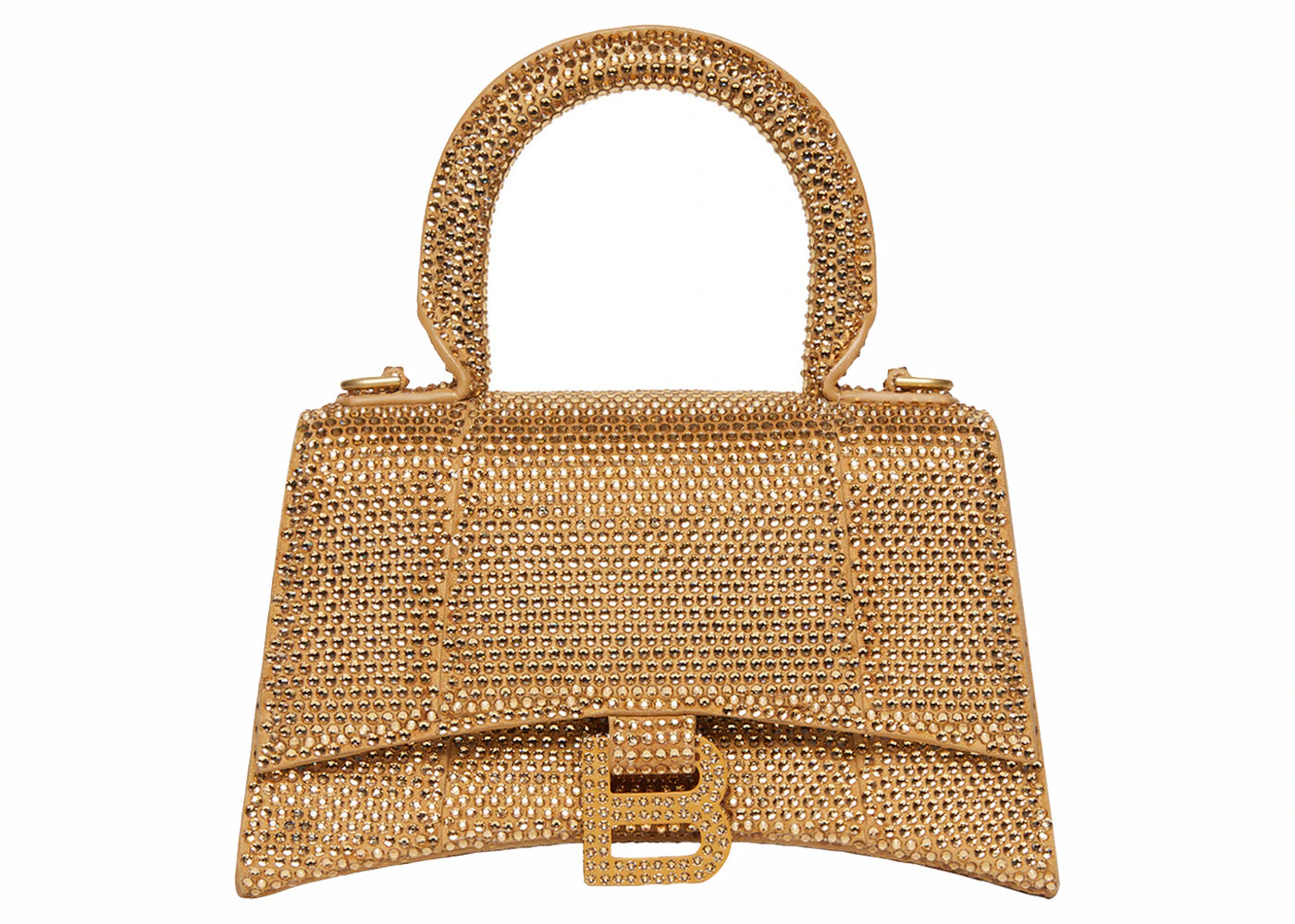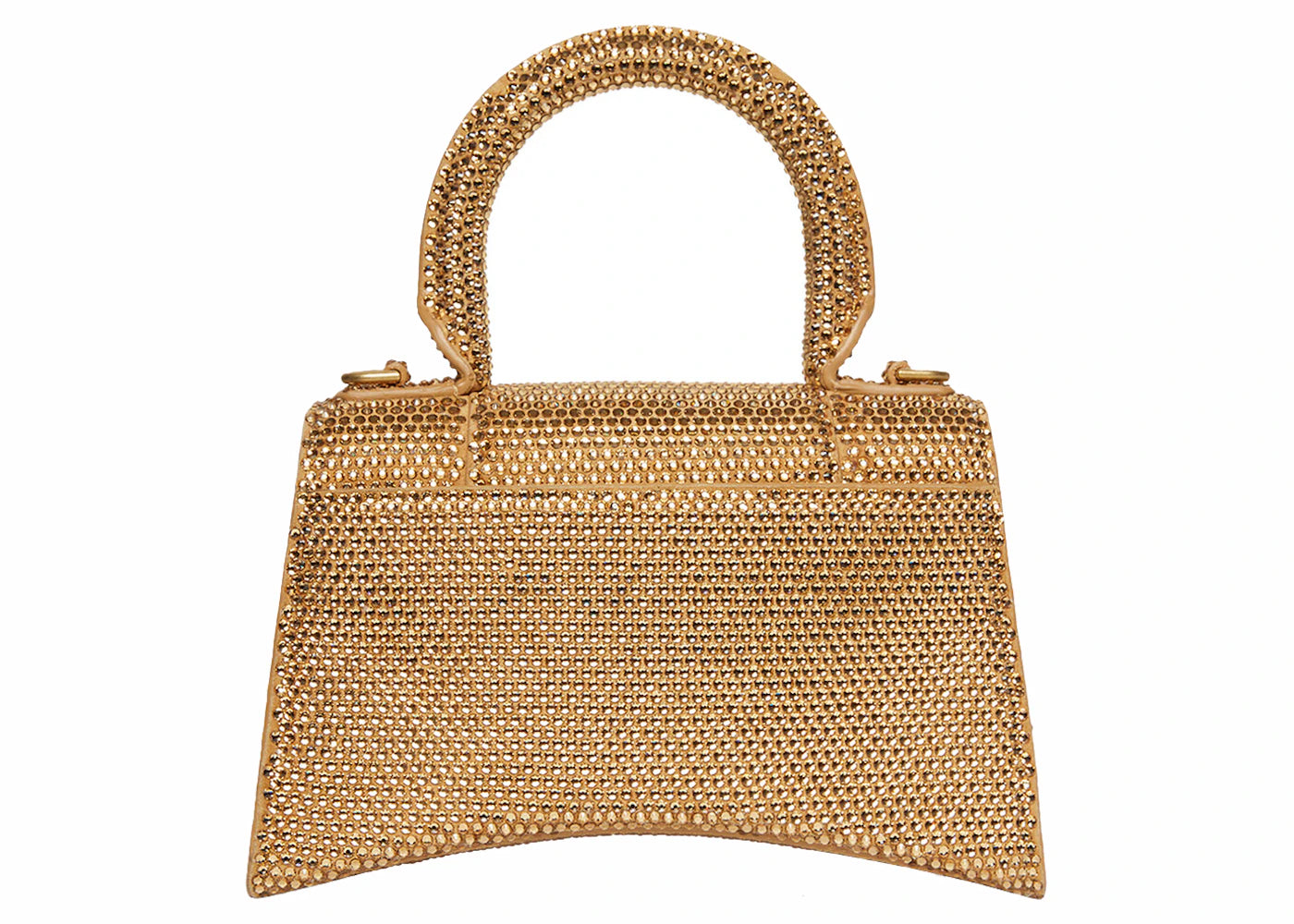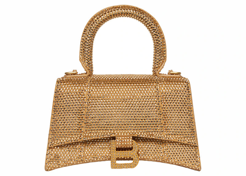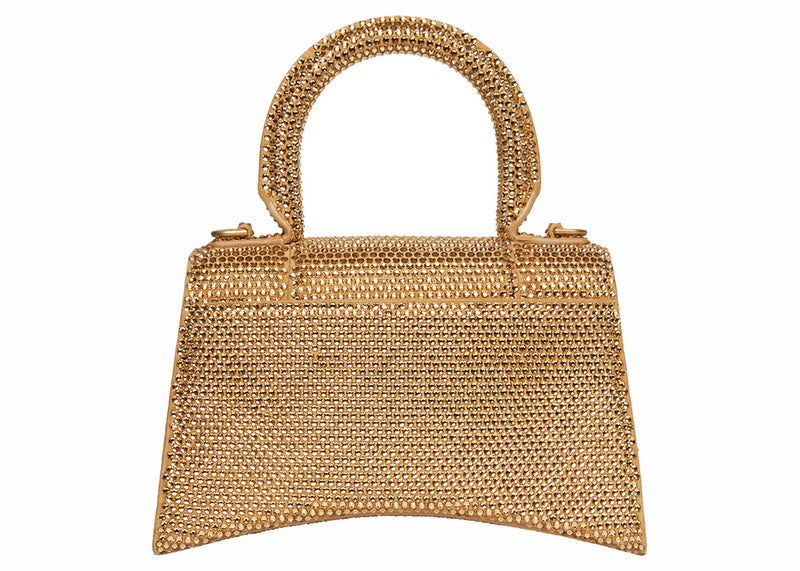 The Balenciaga Hourglass XS Handbag With Rhinestones Gold is now available at Side Kicks!