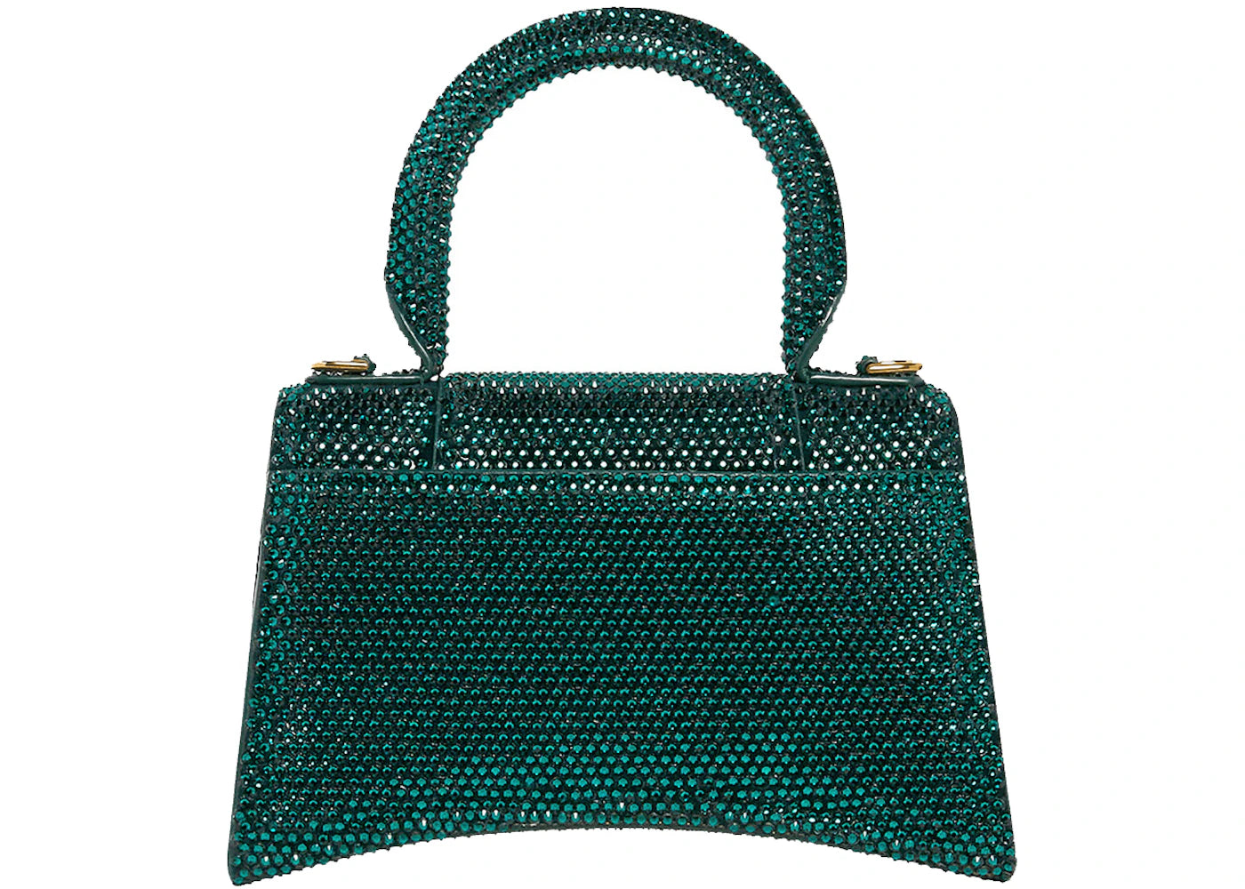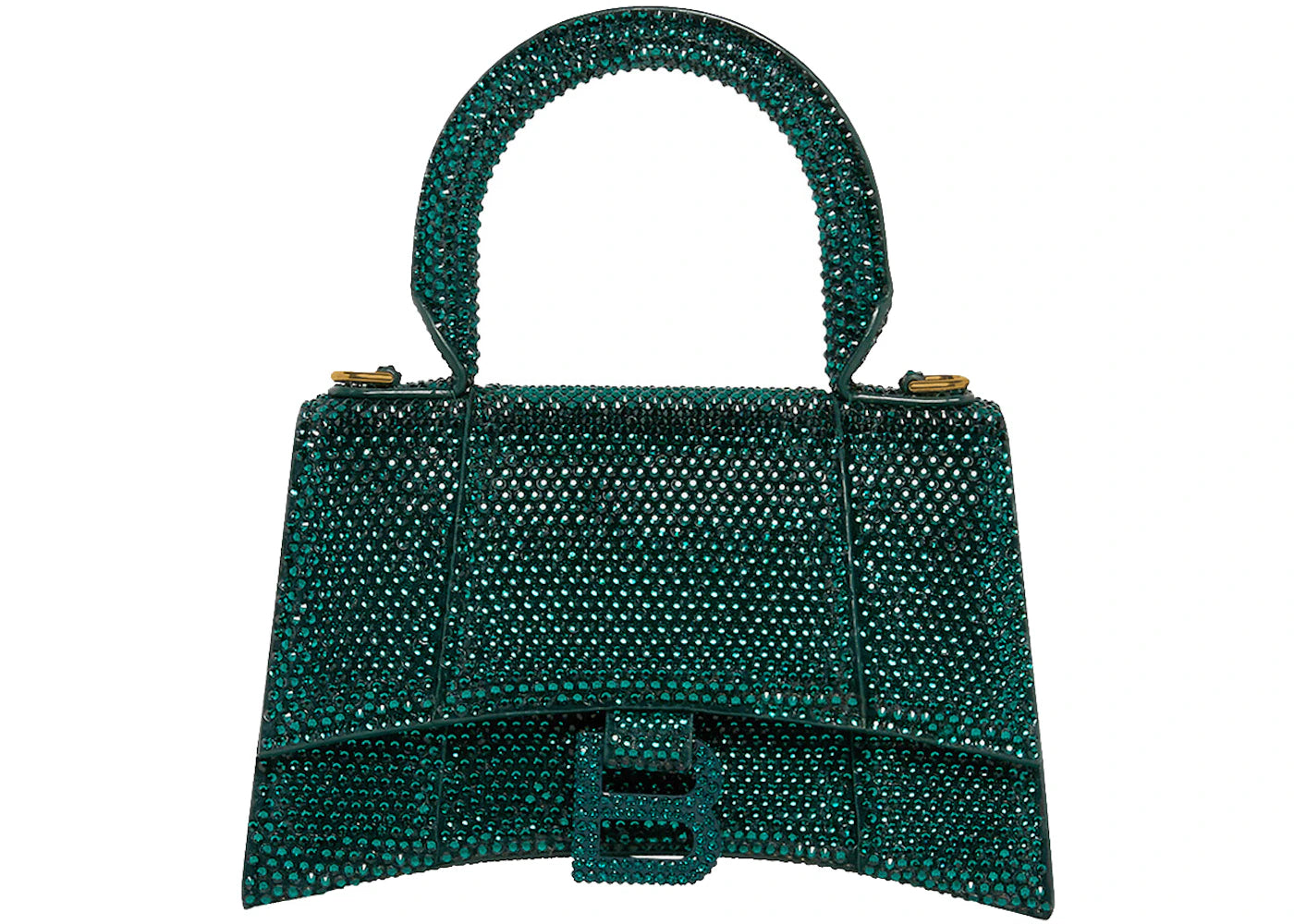 The Balenciaga Hourglass XS Hangbag With Rhinestones Green is now available at Side Kicks!