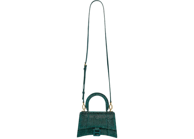 Balenciaga Hourglass XS Hangbag With Rhinestones Green