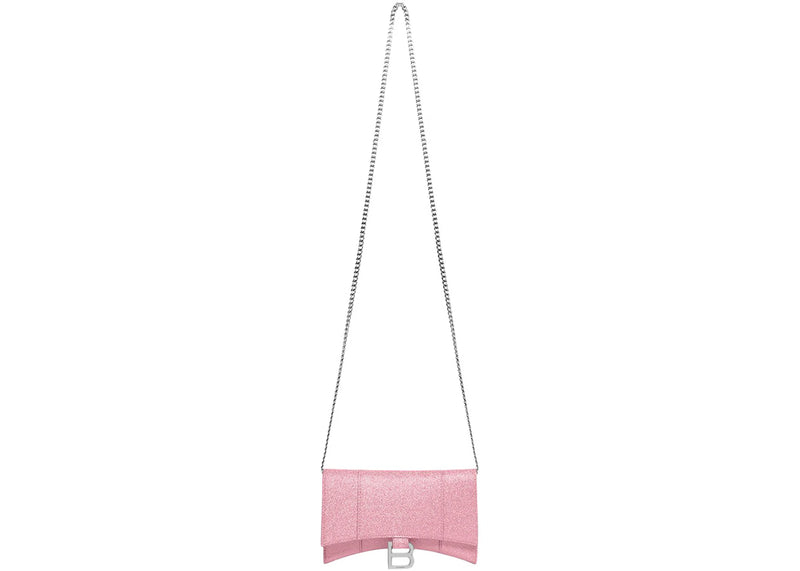 Balenciaga Hourglass XS Wallet On Chain In Sparkling Fabric Pink