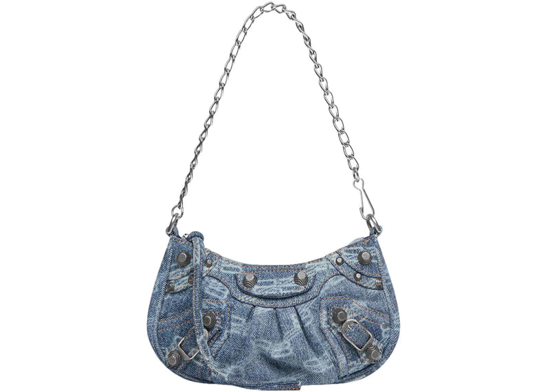 Balenciaga Le Cagole Mini Bag with Chain BB Monogram Bleached Denim
