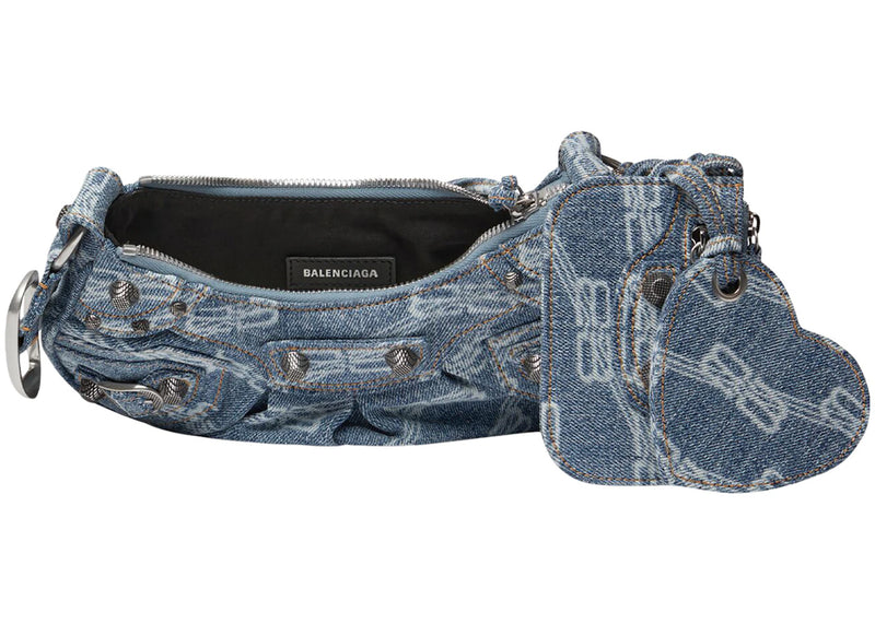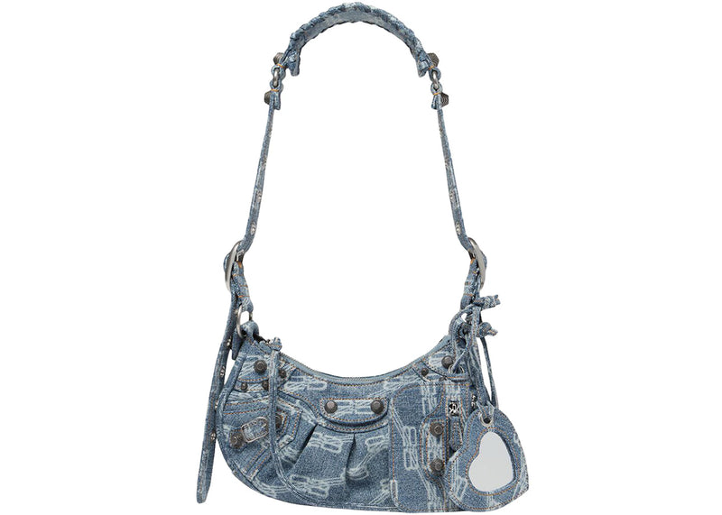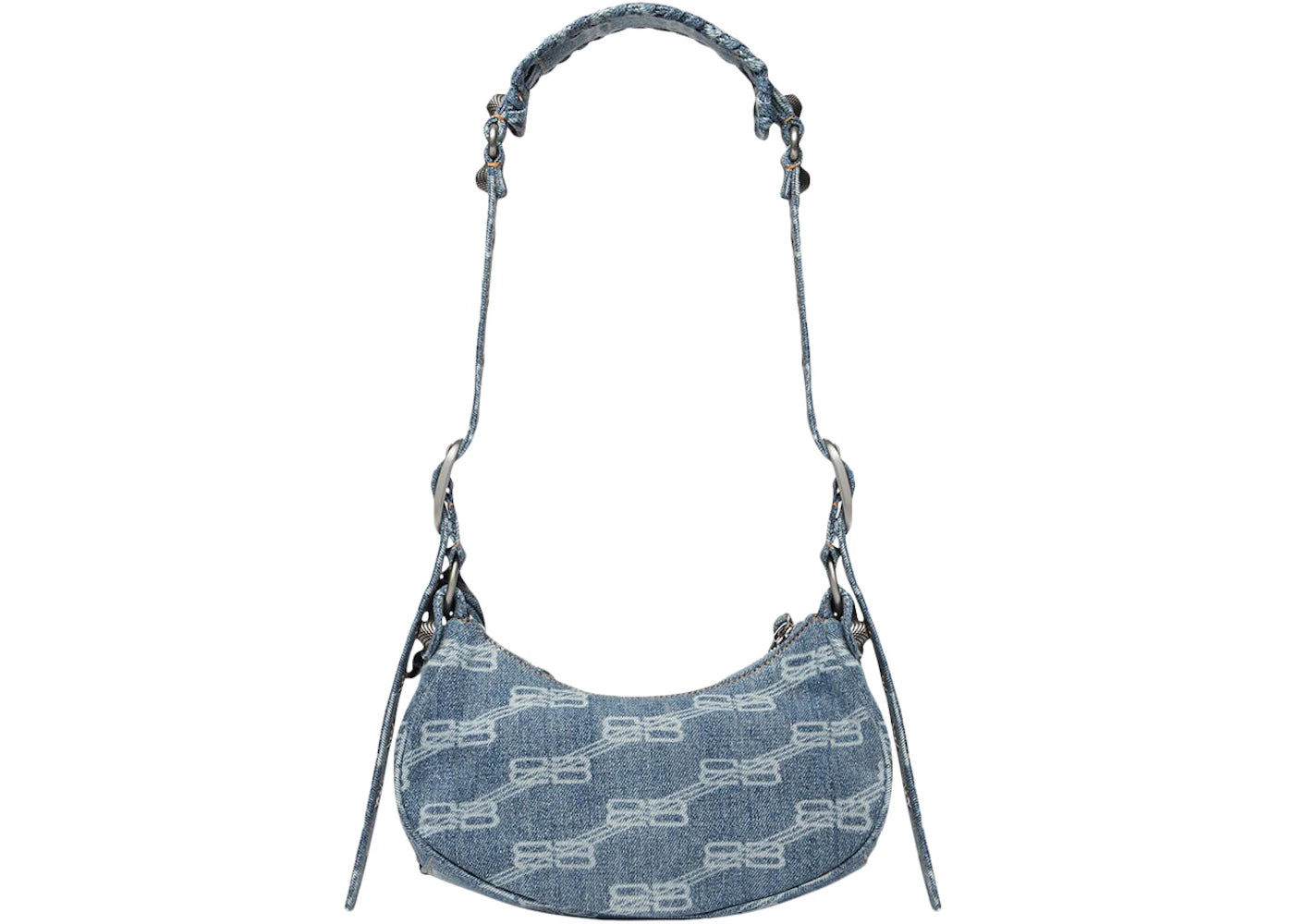 Balenciaga Le Cagole Shoulder Bag XS BB Monogram Blue/Bleached Denim
