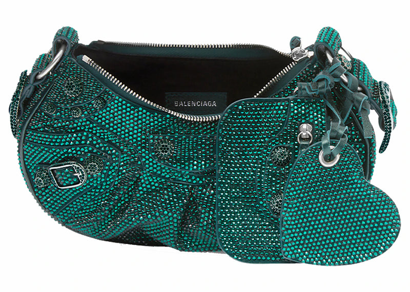 Balenciaga Le Cagole Shoulder Bag XS Green Suede with Rhinestones