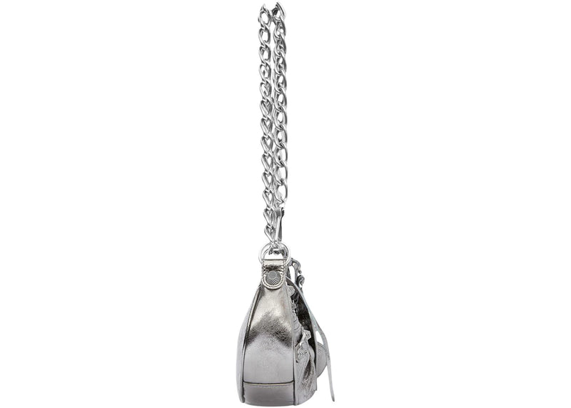 The Balenciaga Le Cagole Shoulder Bag XS With Chain Metallized Silver is now available at Side Kicks!