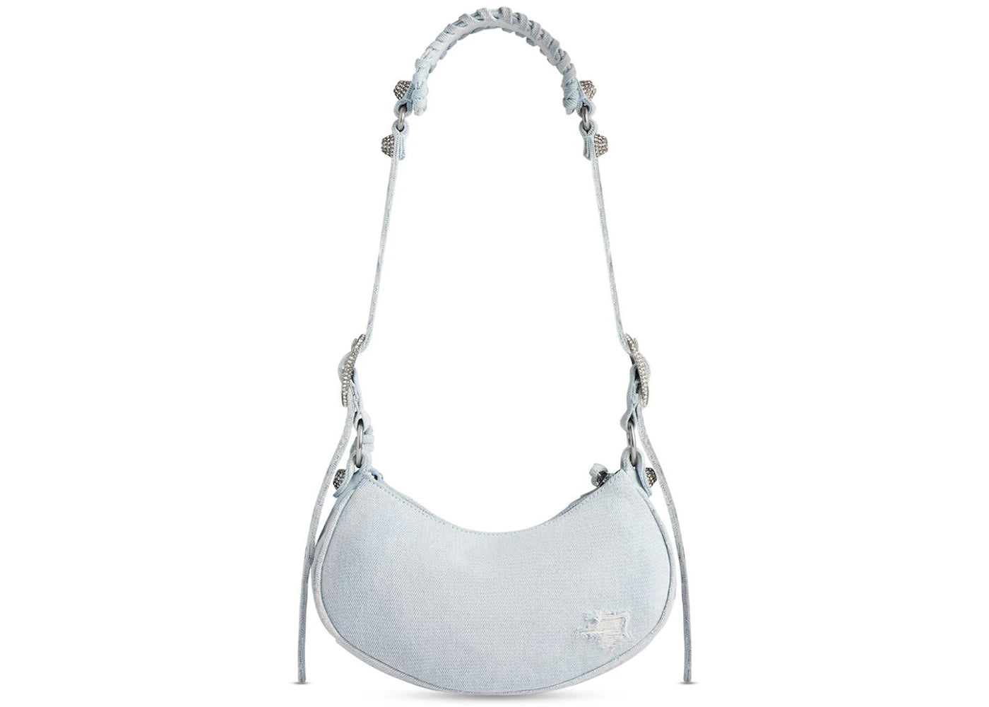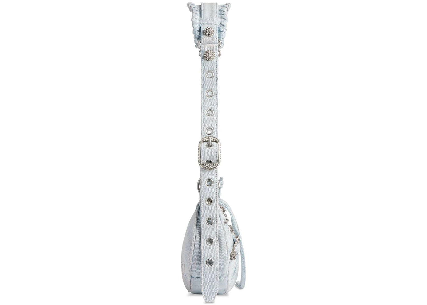 The Balenciaga Le Cagole XS Rhinestones Shoulder Bag Light Blue is now available at Side Kicks!