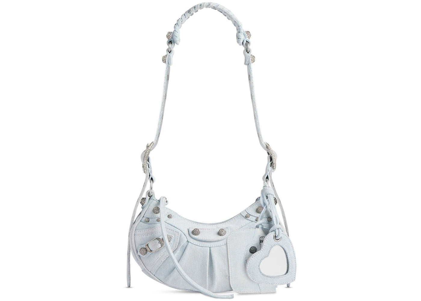 Balenciaga Le Cagole XS Rhinestones Shoulder Bag Light Blue
