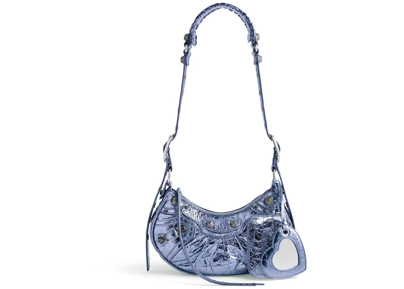 The Balenciaga Le Cagole XS Shoulder Bag Metallized Purple is now available at Side Kicks!