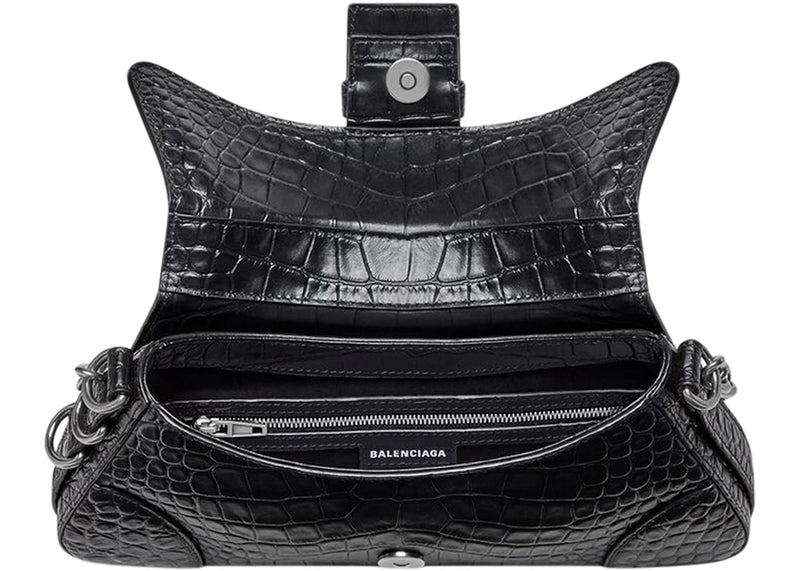 The Balenciaga Lindsay Shoulder Bag Small Crocodile Embossed Black is now available at Side Kicks!
