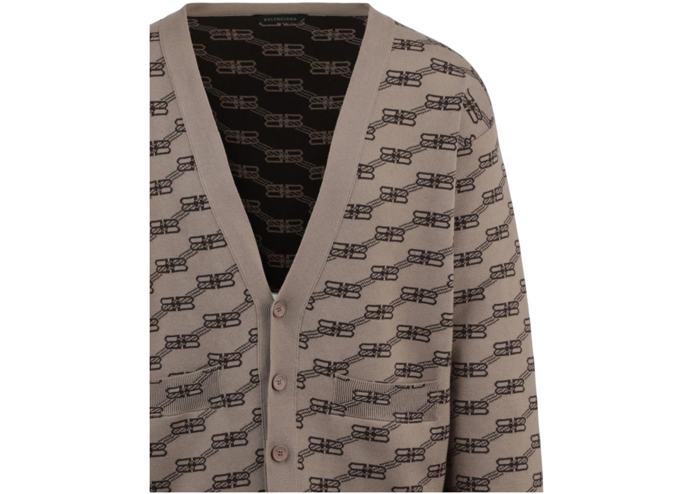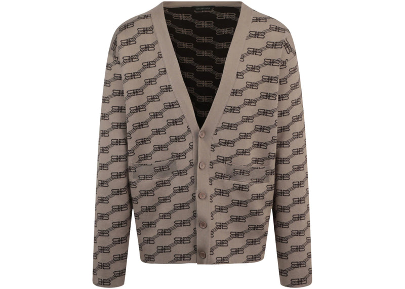 The Balenciaga Logo Intarsia-Knit Cardigan Beige is now available at Side Kicks!