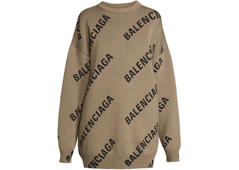 The Balenciaga Logo Intarsia Oversize Crewneck Womens Sweater Light Brown is now available at Side Kicks!