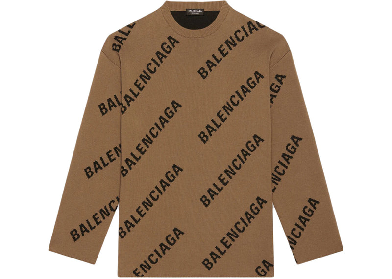 The Balenciaga Logo Intarsia Oversized Crewneck Sweater Light Brown is now available at Side Kicks!