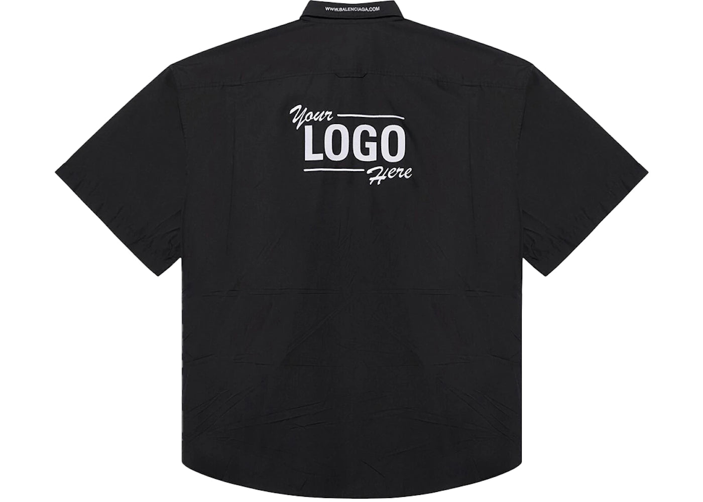 The Balenciaga One Size Your Logo Here Short Sleeve Shirt Black is now available at Side Kicks!
