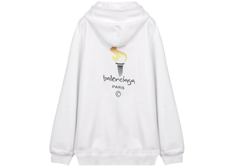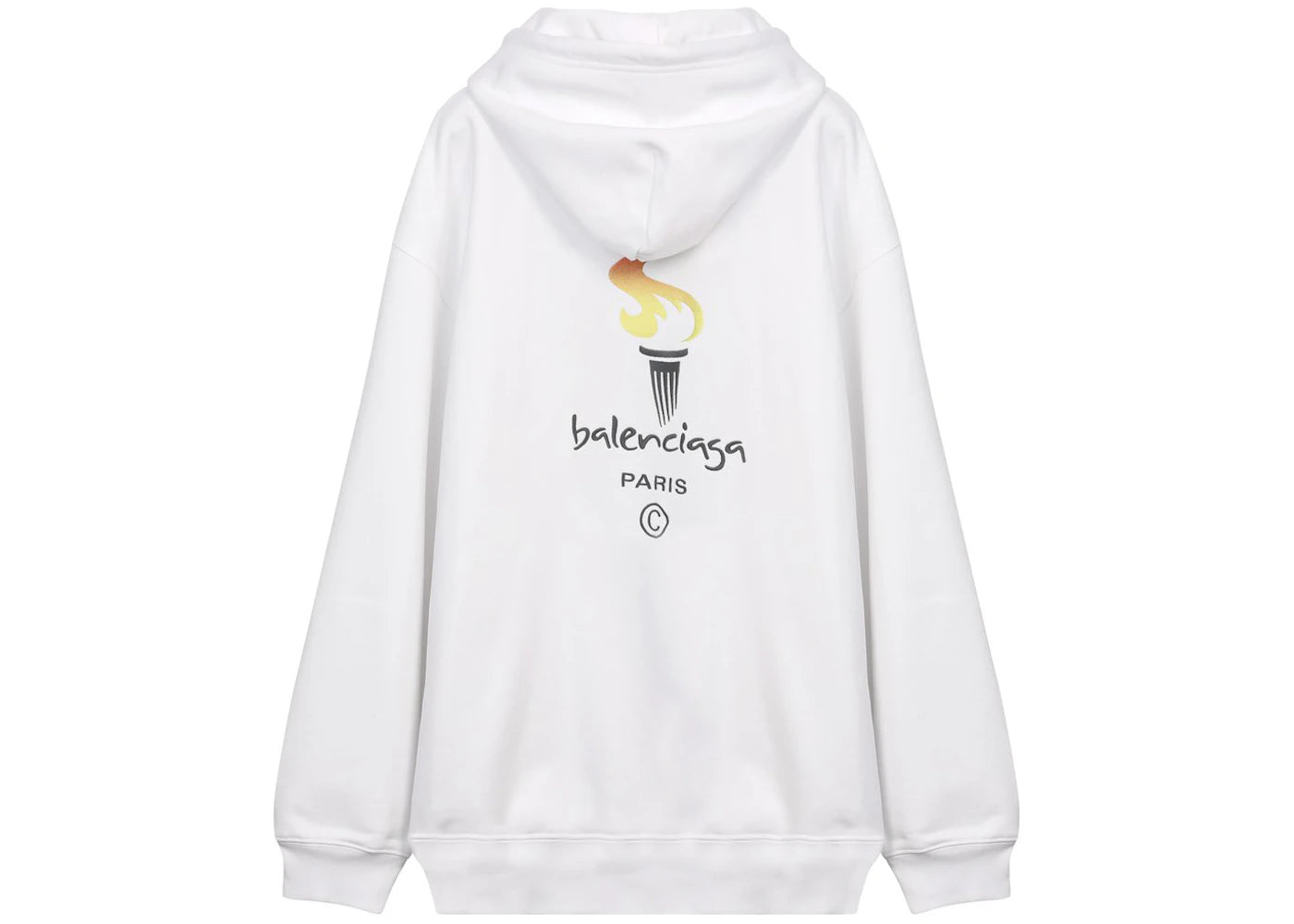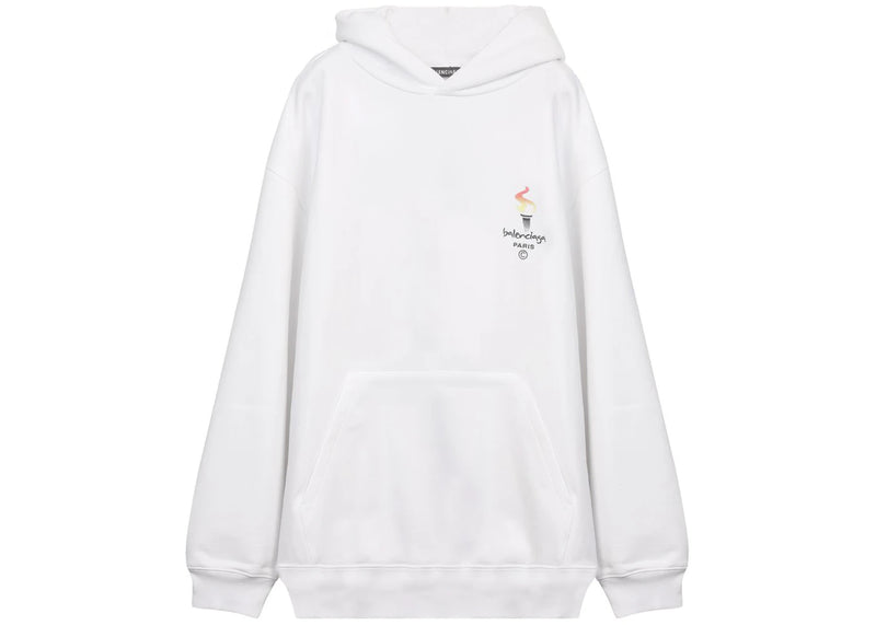 The Balenciaga Paris Olympics Embroidery Hoodie White is now available at Side Kicks!