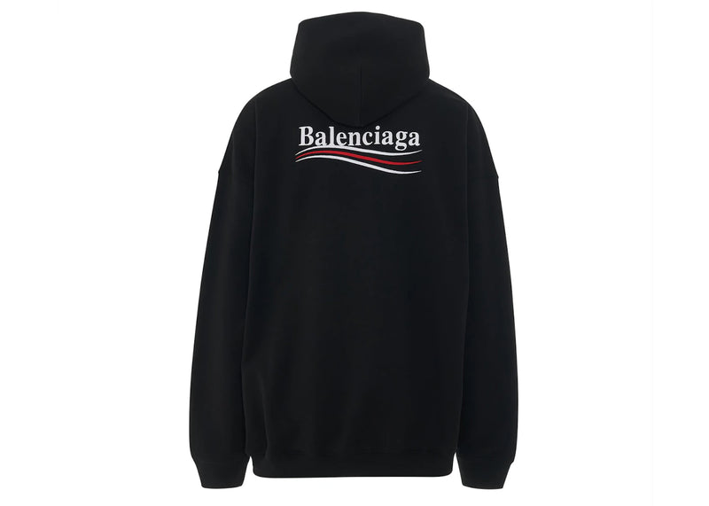 The Balenciaga Political Campaign Large Fit Hoodie Black is now available at Side Kicks!