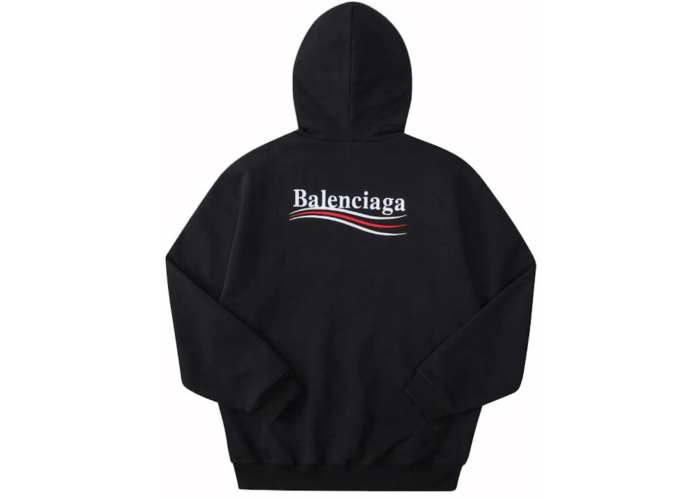 The Balenciaga Political Campaign Logo Popover Hoodie Black is now available at Side Kicks!