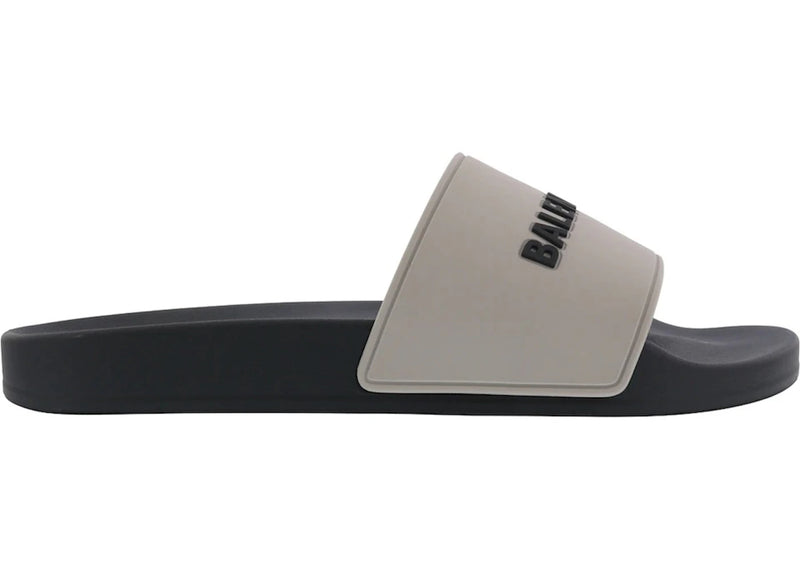 The Balenciaga Pool Slide Light Grey Black is now available at Side Kicks!