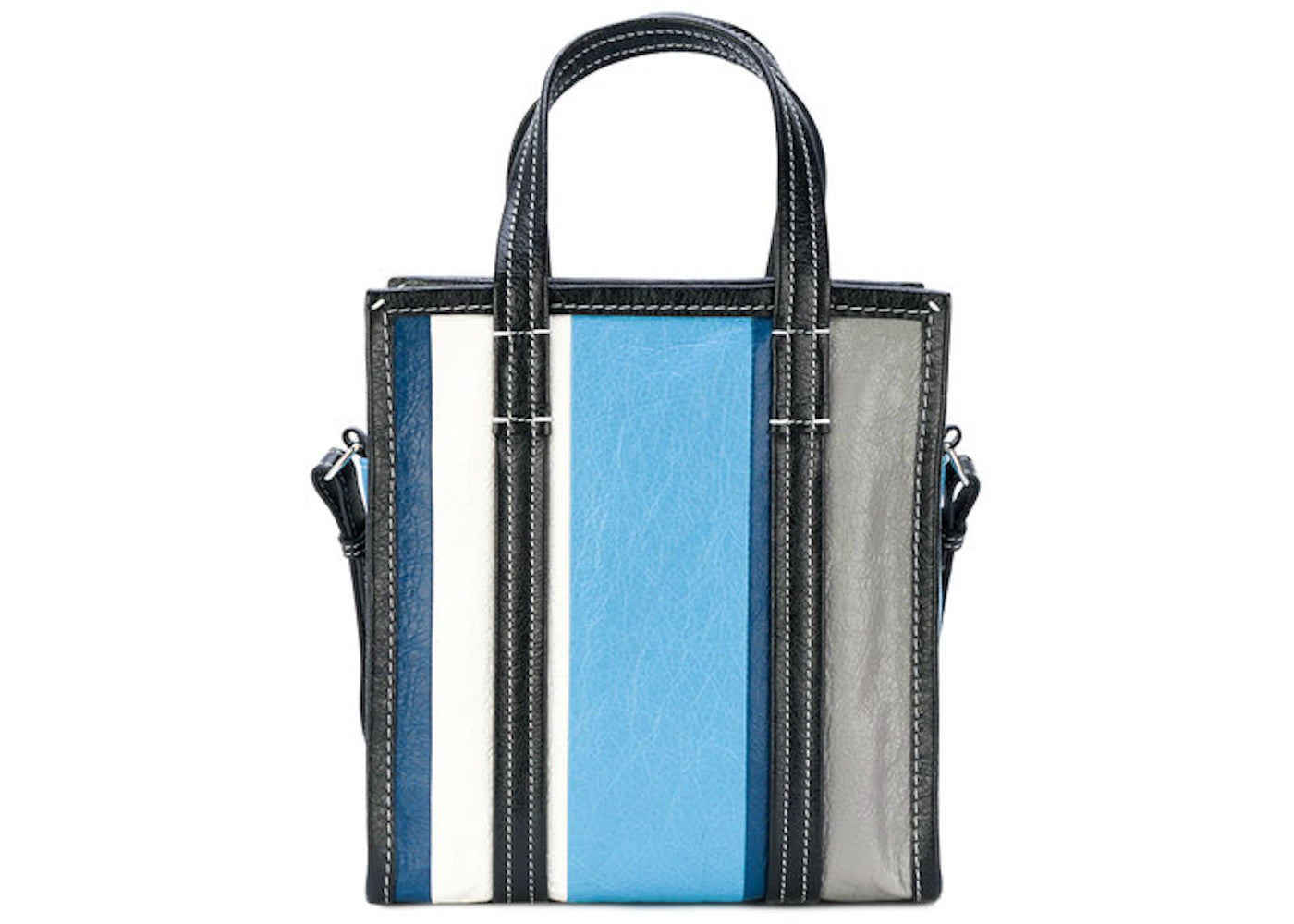The Balenciaga Shopper Bazar Striped XS Blue Grey White is now available at Side Kicks!