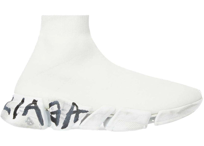 The Balenciaga Speed 2.0 Graffiti Recycled Knit White (Women's) is now available at Side Kicks!