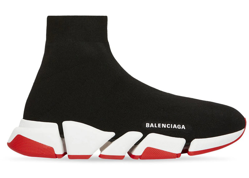 The Balenciaga Speed 2.0 Recycled Knit Black White Red Sole is now available at Side Kicks!