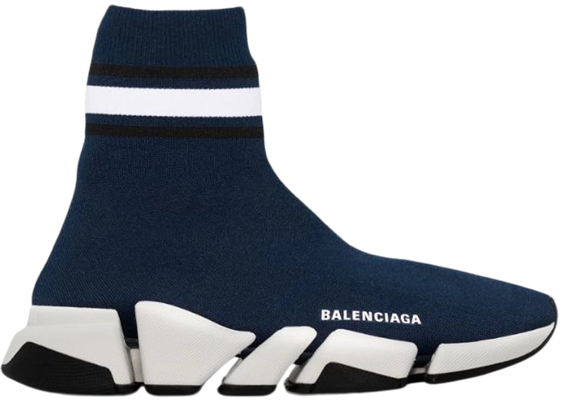 The Balenciaga Speed 2.0 Striped Navy Blue Black White (Women's) is now available at Side Kicks!