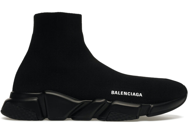 The Balenciaga Speed 2021 Black features a tech-knit 3D upper for a flexible, sock-like fit. The chunky rubber outsole adds a futuristic touch, while the "No Memory" technology ensures sneaker-level support. White Balenciaga branding contrasts the all-black colorway for a streamlined look.