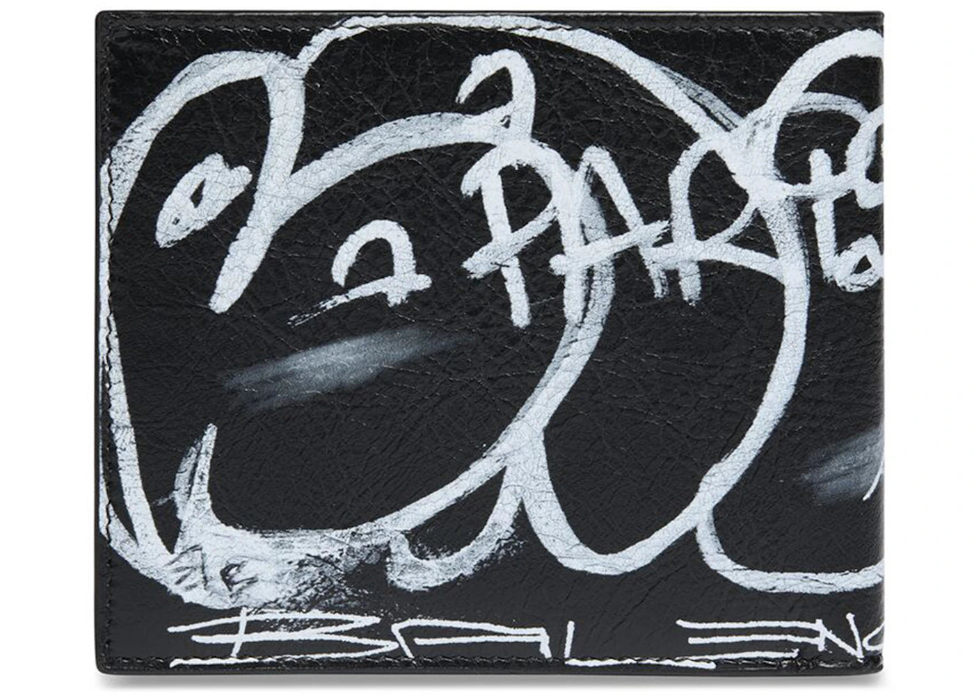 The Balenciaga Square Folded Graffiti Wallet Black/White is now available at Side Kicks!