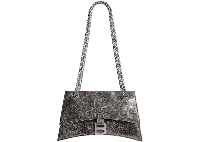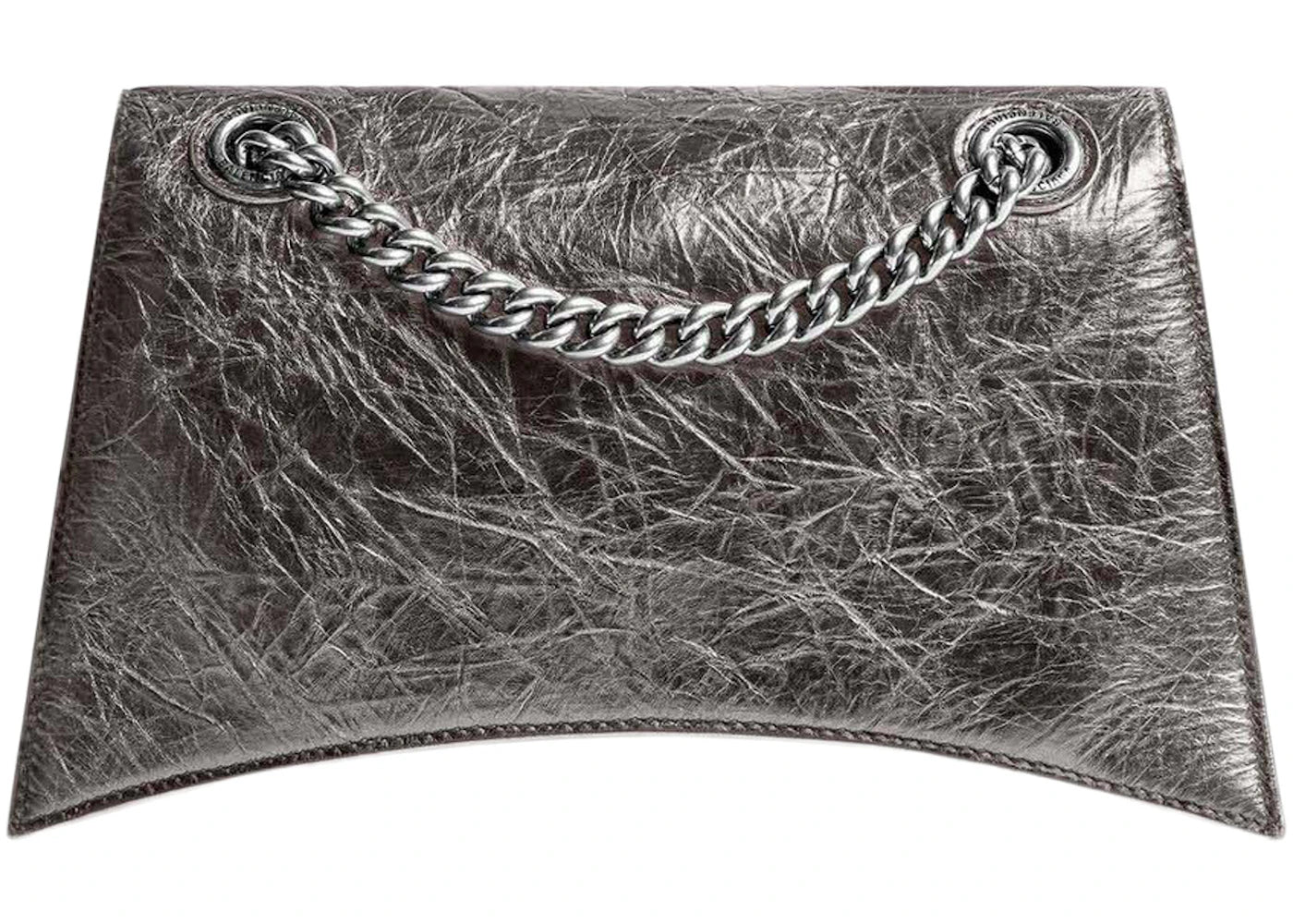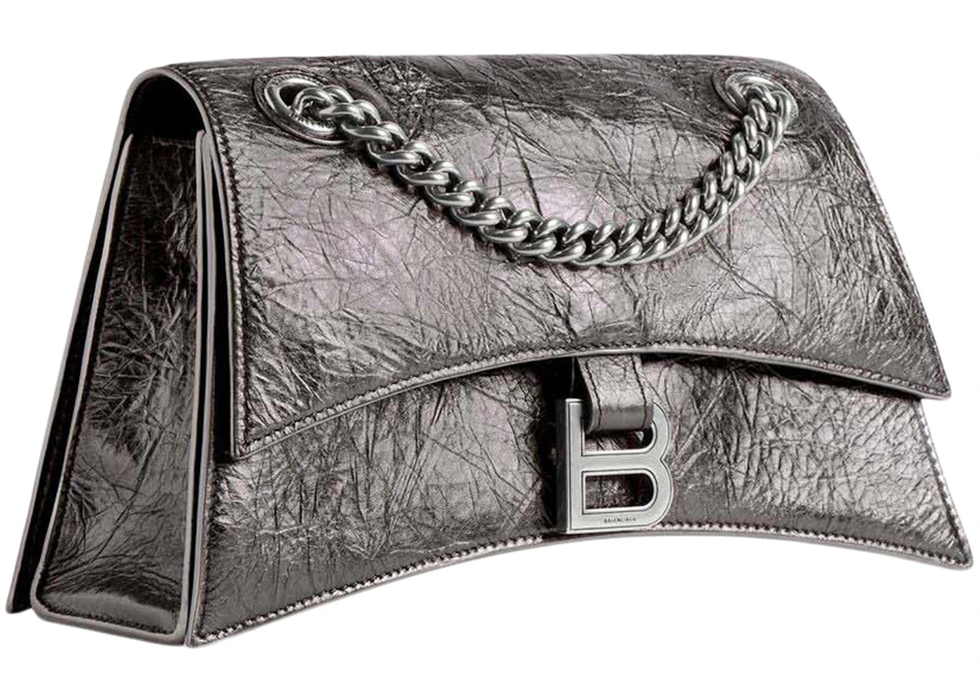 The Balenciaga Women's Crush Small Chain Bag Metallized Dark Grey is now available at Side Kicks!