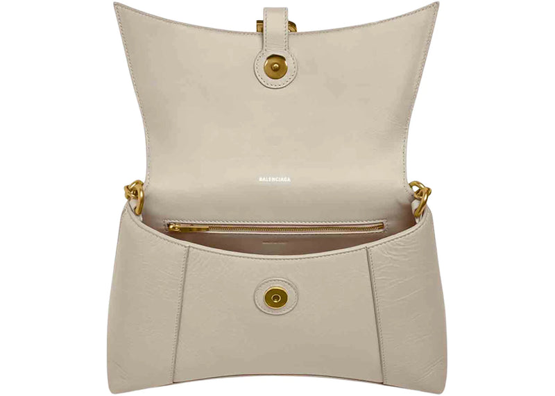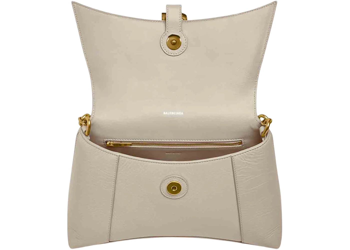 The Balenciaga Women's Downtown Shoulder Bag with Chain Small Beige is now available at Side Kicks!