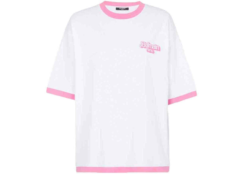 The Balmain x Barbie - Cotton T-shirt White with Pink Balmain Logo Print is now available at Side Kicks!