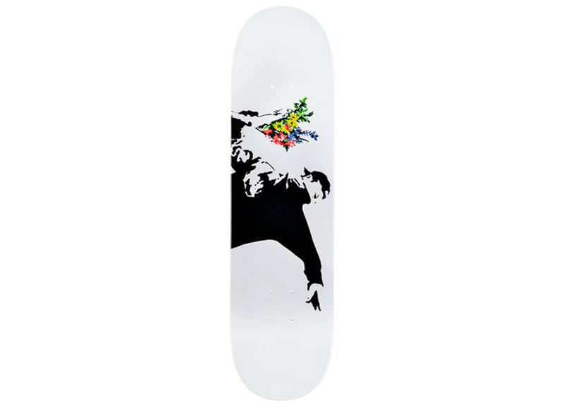 The Banksy x Medicom Flower Bomber II Skateboard Deck White is now available at Side Kicks!