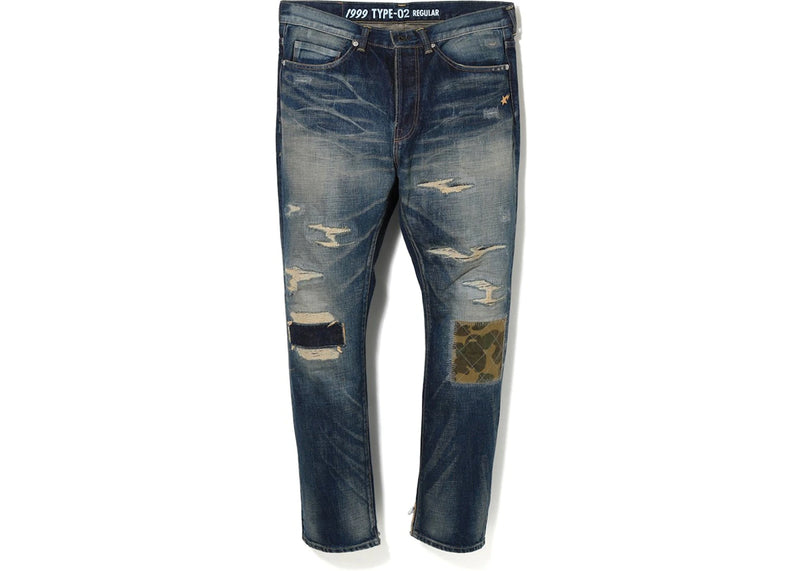 The BAPE 1999 Type-2 Damage Denim Pants Indigo is now available at Side Kicks!