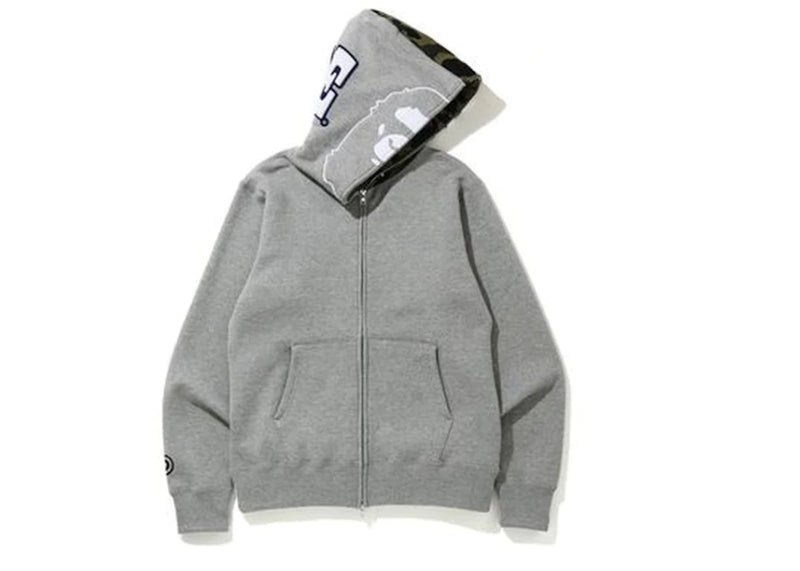 The BAPE 1st Camo 2nd Ape Full Zip Hoodie Grey is now available at Side Kicks!