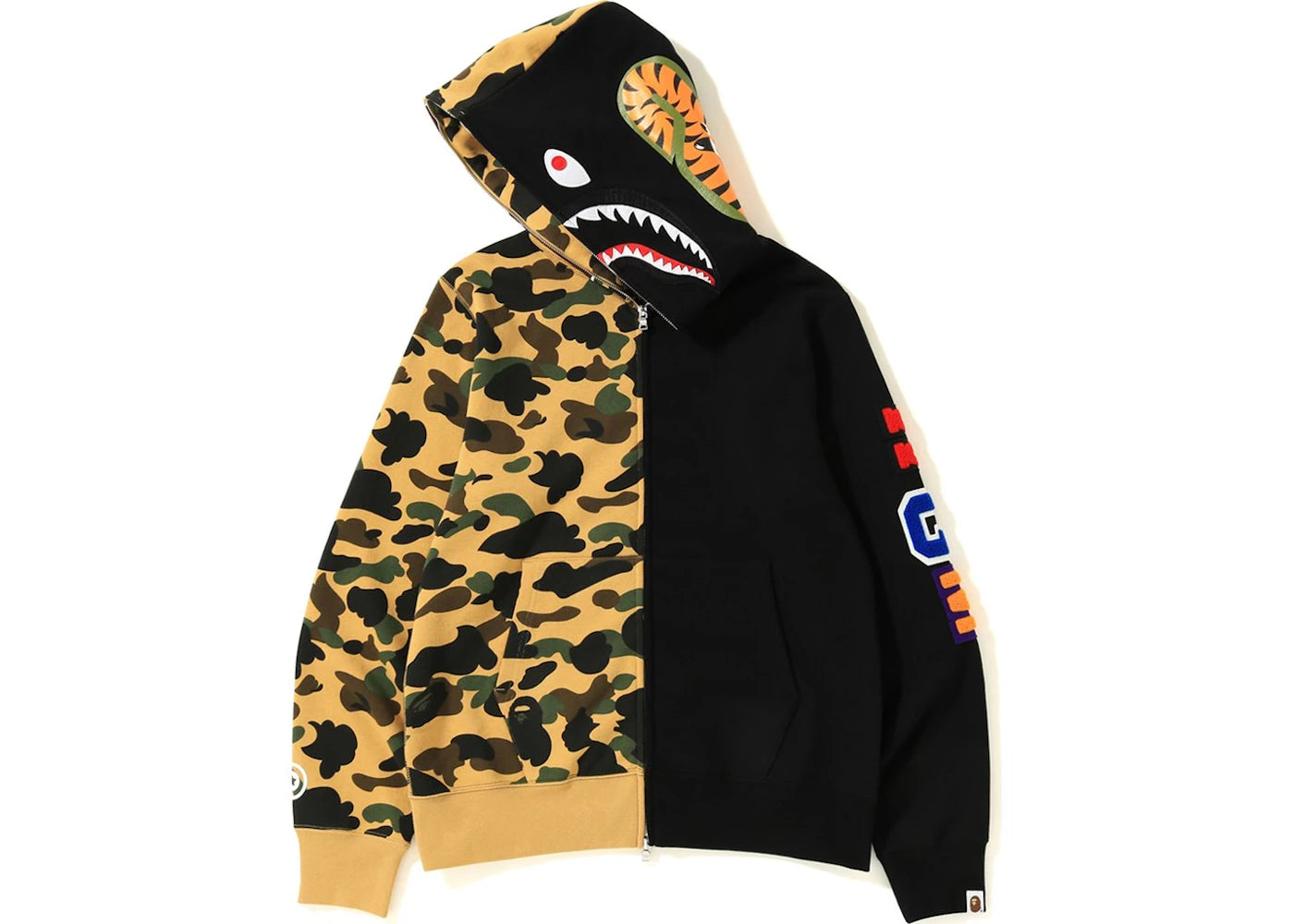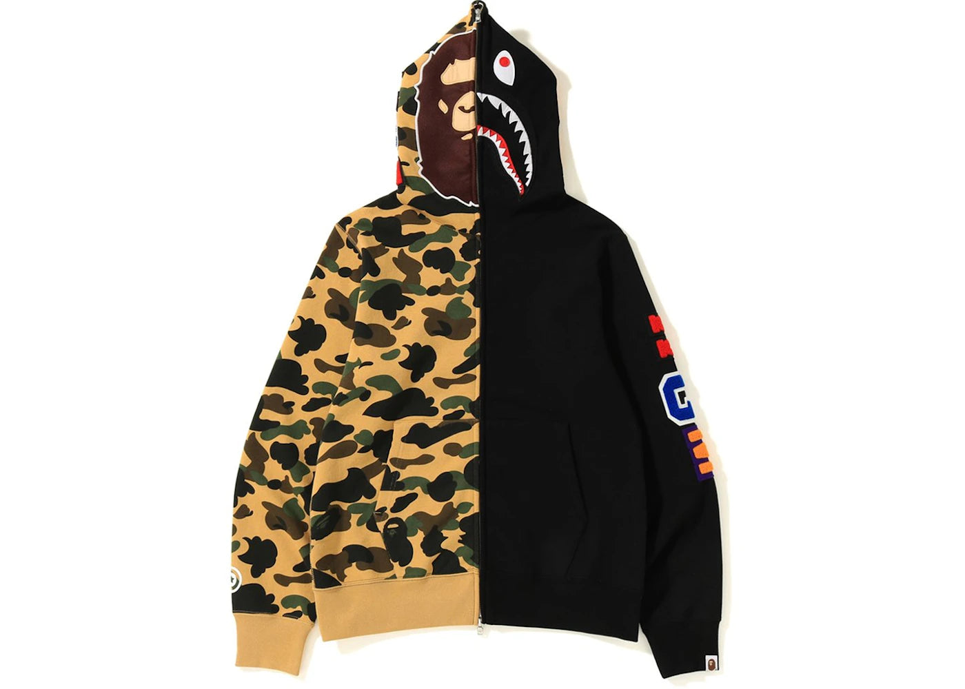 BAPE 1st Camo 2nd Ape Shark Half Full Zip Hoodie Black/Yellow