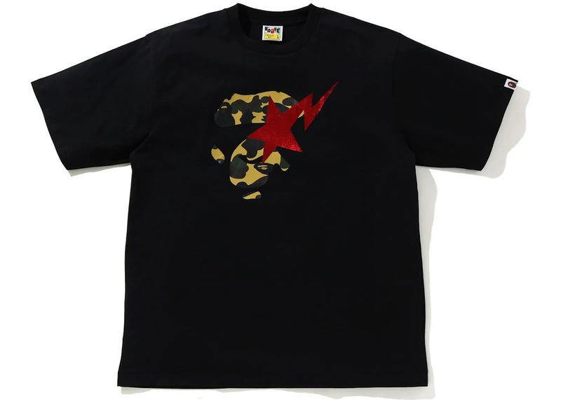 The BAPE 1st Camo Ape Face Sta Relaxed Fit Tee Black/Yellow is now available at Side Kicks!