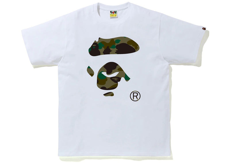 The BAPE 1st Camo Ape Face Tee White/Green is now available at Side Kicks!