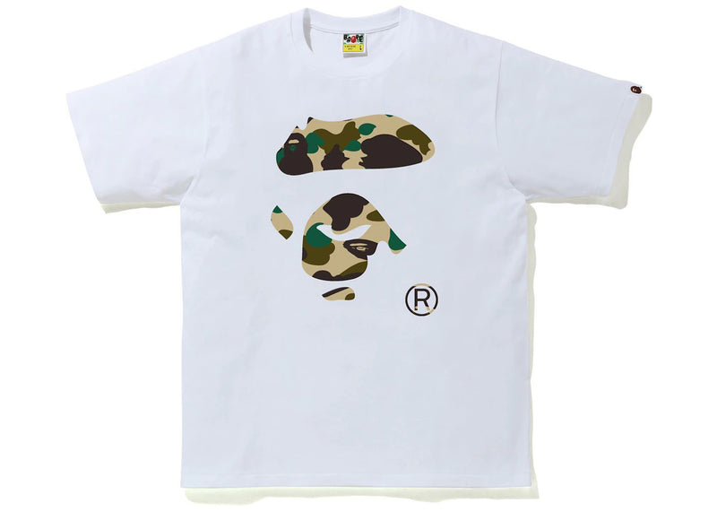 The BAPE 1st Camo Ape Face Tee White/Yellow is now available at Side Kicks!