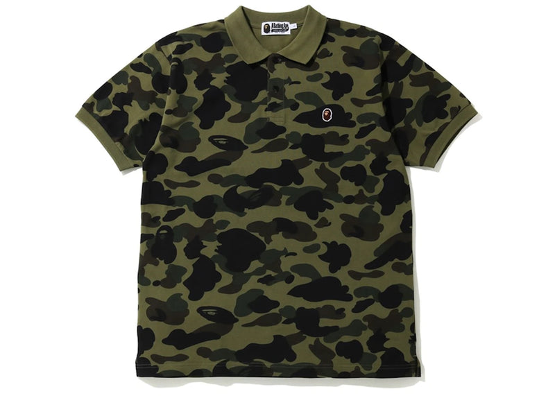 The BAPE 1st Camo Ape Head One Point Polo Green is now available at Side Kicks!