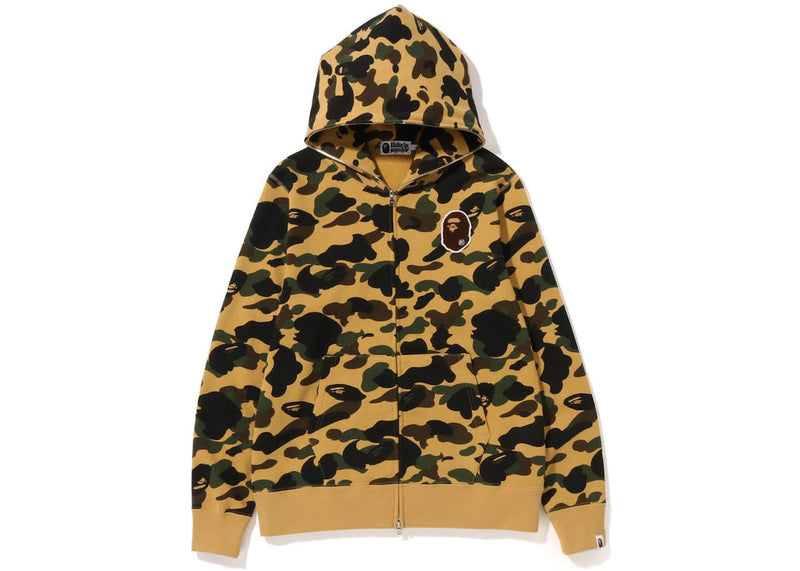 The BAPE 1St Camo Ape Head Patched Full Zip Hoodie (FW22) Yellow is now available at Side Kicks!