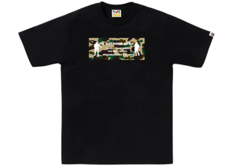The BAPE 1st Camo Army Name Tee Black/Yellow is now available at Side Kicks!
