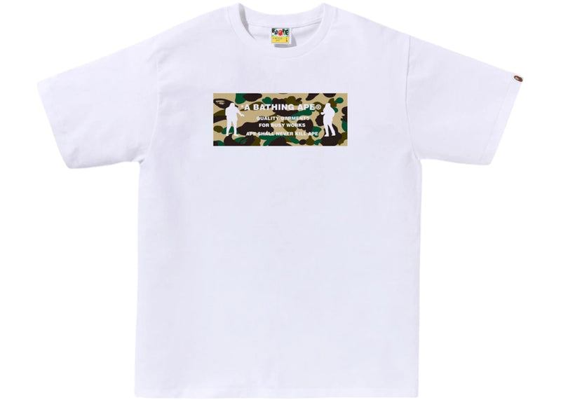 The BAPE 1st Camo Army Name Tee White/Yellow is now available at Side Kicks!