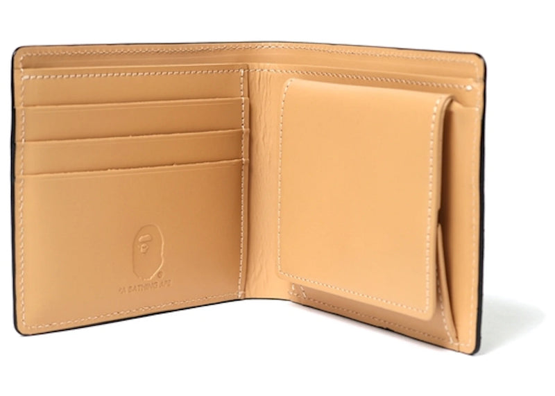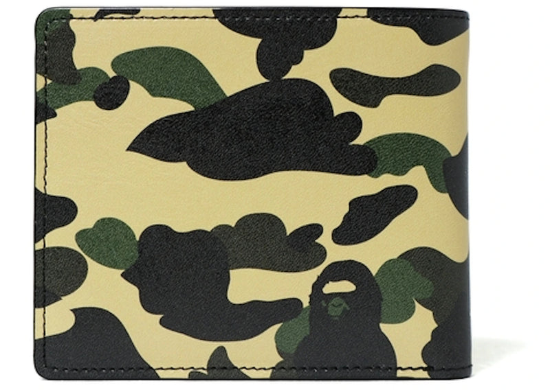 The BAPE 1st Camo Ats Leather Wallet yellow/Orange is now available at Side Kicks!