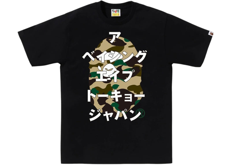 The BAPE 1st Camo Bape Katakana Tee Black/Yellow is now available at Side Kicks!