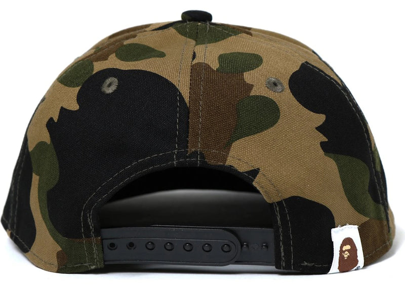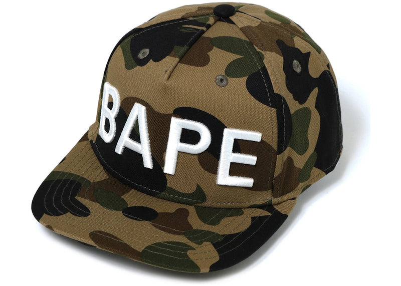 The BAPE 1st Camo College Mesh Cap Green combines a structured cotton front with the brand's signature 1st Camo pattern in green, brown, and tan. It features an embroidered white...