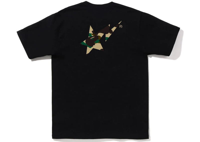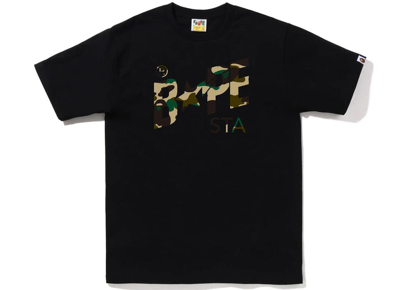 The BAPE 1st Camo BAPE Sta Logo Tee (FW22) Black Yellow is now available at Side Kicks!