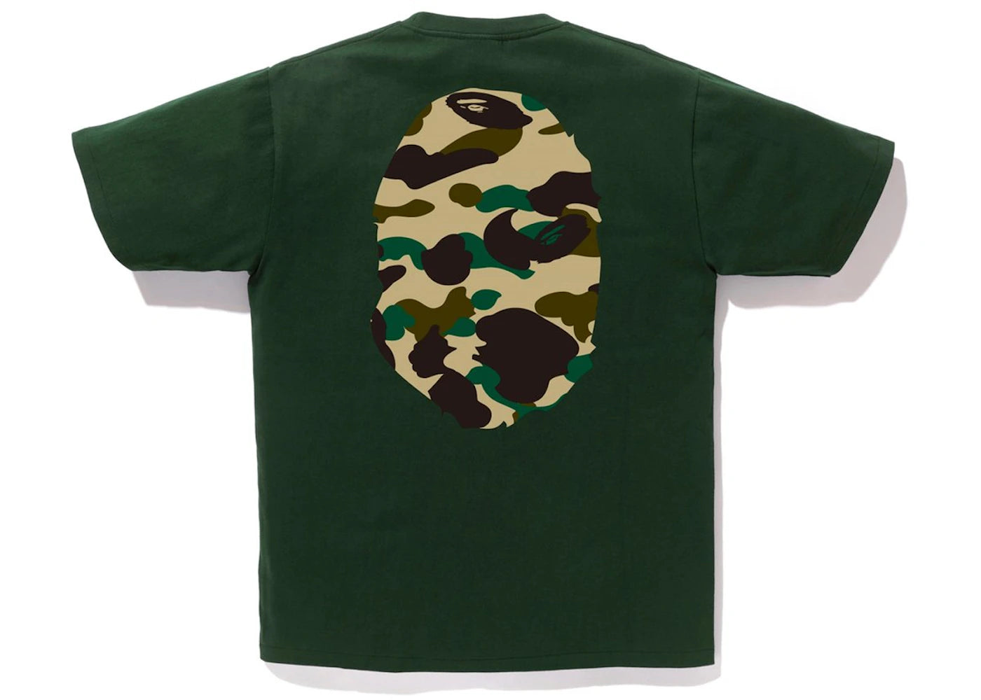 The BAPE 1st Camo Big Ape Head Tee Green/Yellow is now available at Side Kicks!
