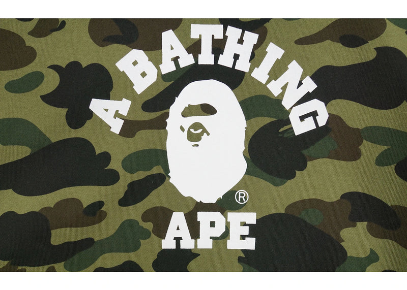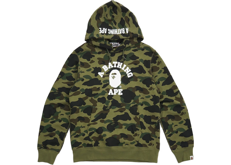 BAPE 1st Camo College Logo Pullover Hoodie Green
