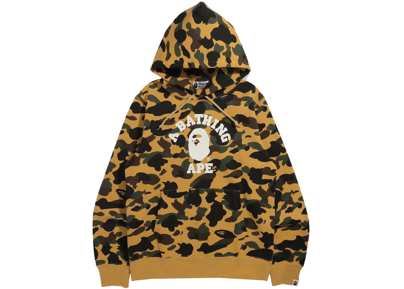The BAPE 1st Camo College Pullover Hoodie (FW21) Yellow is now available at Side Kicks!