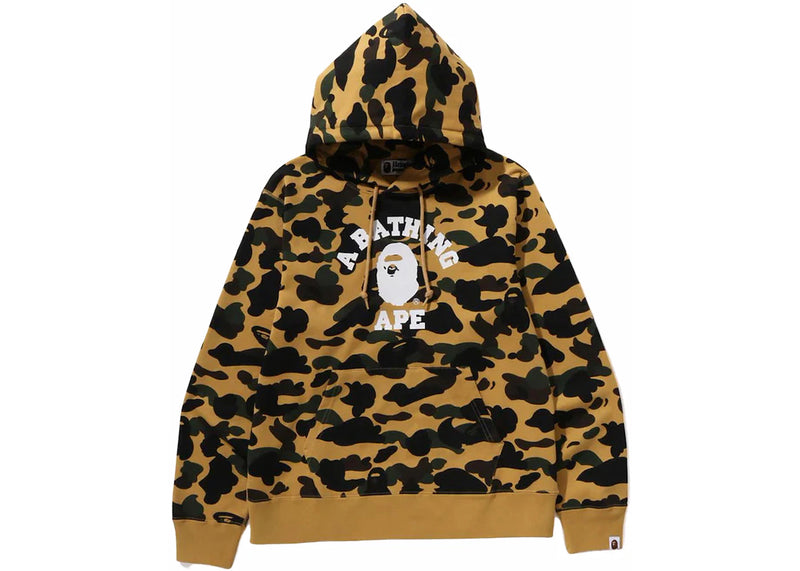 The BAPE 1st Camo College Pullover Hoodie (FW23) Yellow is now available at Side Kicks!