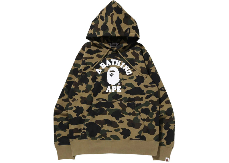 The BAPE 1st Camo College Pullover Hoodie Green is now available at Side Kicks!