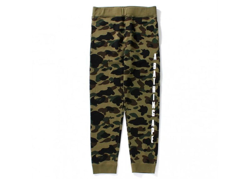 The BAPE 1St Camo Slim Side Logo Sweatpants Green is now available at Side Kicks!